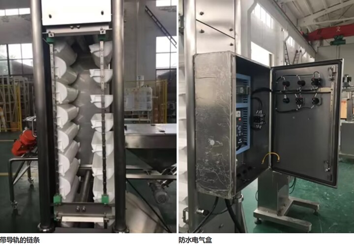 (1)斗式提升機機座底板和鏈斗相碰,調(diào)整機座的松緊裝置,使鏈條張緊。