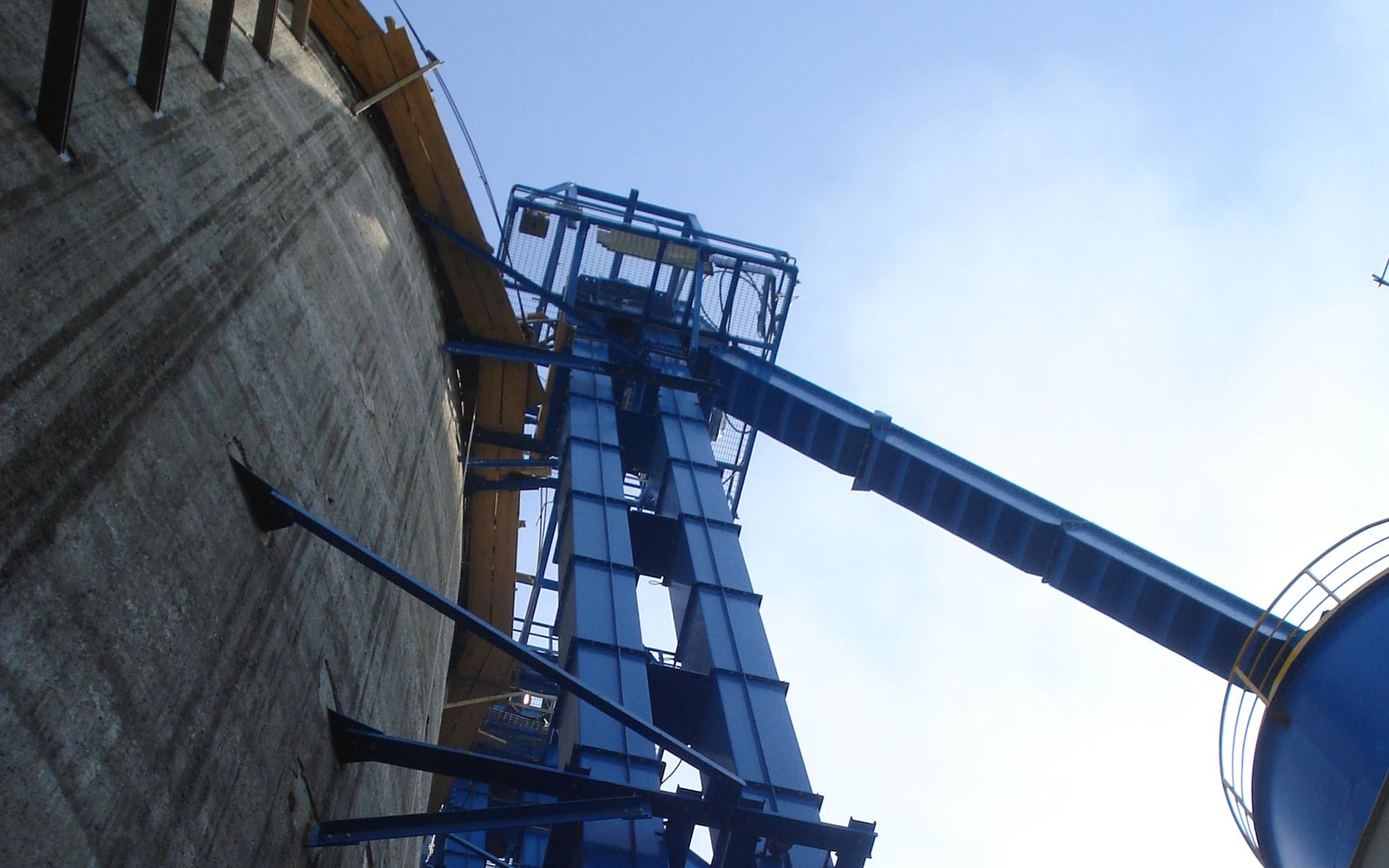 傾斜斗式提升機(jī)的牽引構(gòu)件在傾斜角度過大時(shí)需增設(shè)支撐牽引構(gòu)件的裝置,而使結(jié)構(gòu)復(fù)雜,因此一般情況下多采用垂直斗式提升機(jī)。當(dāng)垂直式斗式提升機(jī)不能滿足特殊工藝要求時(shí),才采用傾斜斗式提升機(jī)。