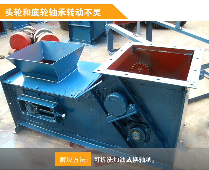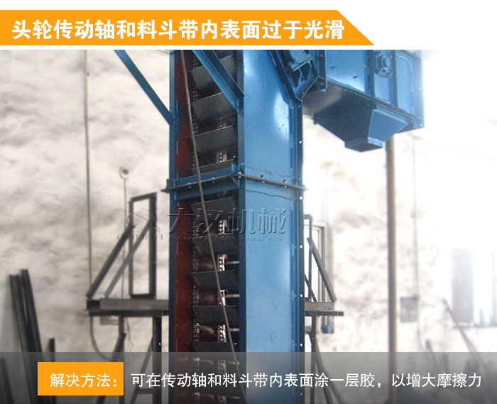 解決方法:可在傳動(dòng)軸和料斗帶內(nèi)表面涂一層膠,以增大摩擦力。