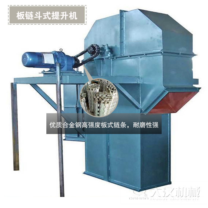 板鏈斗式提升機采用自流式裝料,重力式卸料,鏈條是優(yōu)質合金鋼高強度板式鏈條,耐磨性強,驅動部分采用硬齒面減速器,適用于中、大塊和有磨琢性的物料,如石灰石、水泥熟料、石膏、塊煤等,物料溫度在250℃以下。