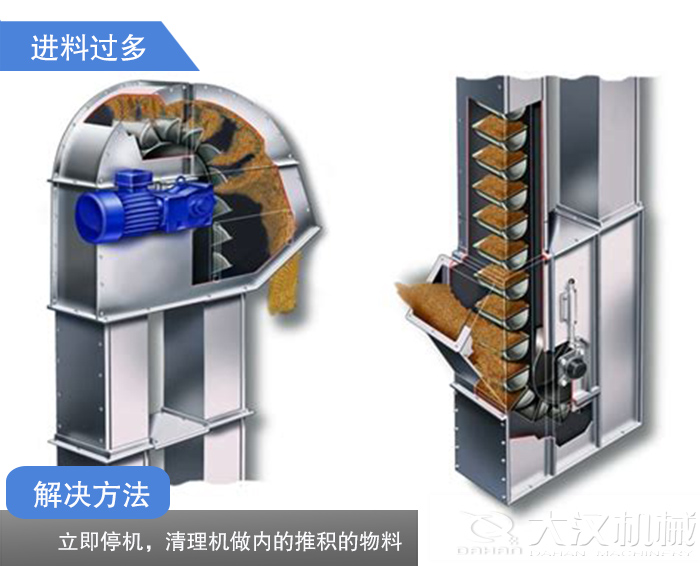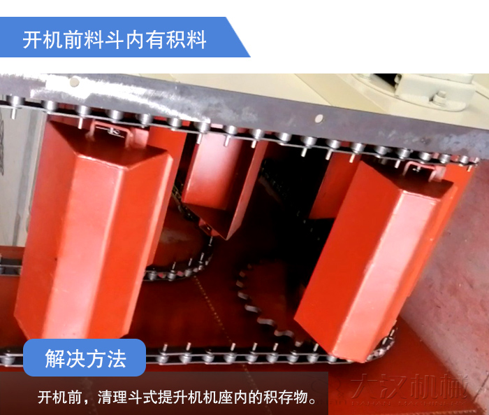 解決辦法:開機前,清理斗式提升機機座內(nèi)的積存物。