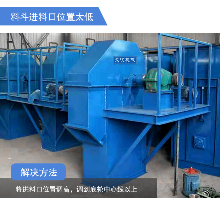 斗式提升機進料要均勻,否則容易導(dǎo)致物料在機座內(nèi)的堆積,升運阻力增大,料斗運行不暢,終造成料斗脫落。