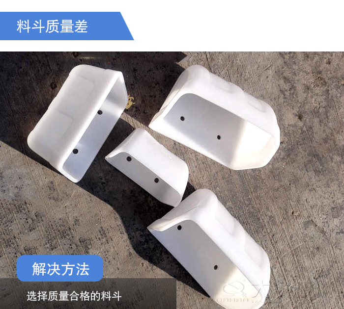 解決方法:選擇質(zhì)量合格的料斗,一般來說,料斗是用普通鋼板或鍍鋅板材焊合或沖壓而成的,其邊緣用折邊或卷入鉛絲以增強料斗的強度。