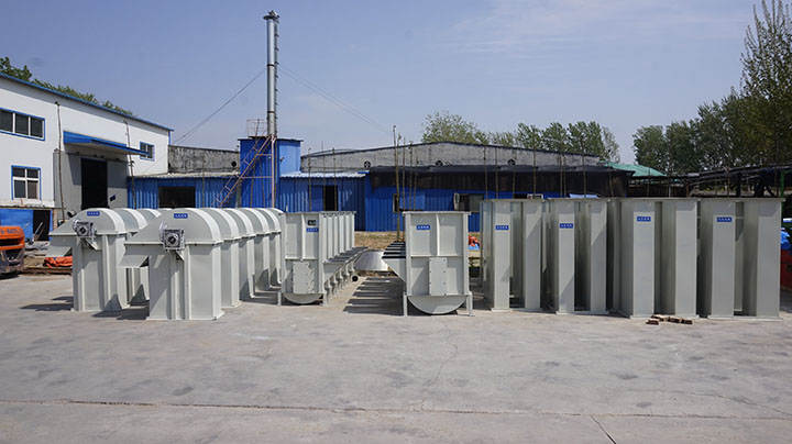經(jīng)過斗提機(jī)機(jī)械技術(shù)人員長期分析研究,對近兩年來每次堵料的情況和原因進(jìn)行分析,由于大塊異物進(jìn)入管道造成堵塞的通過加裝振動(dòng)篩已經(jīng)處理;由于膠帶打滑,減少了提升機(jī)的提升量,使機(jī)座內(nèi)物料增多形成堵塞,我們通過增大張緊力,防止膠帶打滑的產(chǎn)生,但是90%以上堵灰的情況都是由于輸灰系統(tǒng)斗提刮板連接管處出現(xiàn)堵灰,由于當(dāng)時(shí)設(shè)計(jì)不合理引起的。目前輸灰系統(tǒng)斗式提升機(jī)刮板連接管易堵灰的問題,大漢機(jī)械找到比較好的兩種解決方法是: