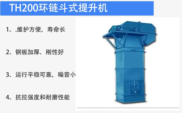 TH200環(huán)鏈斗式提升機適用于輸送粉狀、粒狀及小塊狀的無磨琢及磨琢性小的物料。TH型是一種圓環(huán)鏈斗式提升機采用混合式或重力卸料,挖取式裝料。牽引件用優(yōu)質(zhì)合金鋼高度圓環(huán)鏈。中部機殼分單、雙通道兩種形式為機內(nèi)重錘箱恒力自動張緊。鏈輪采用可換輪緣組合式結(jié)構(gòu)。使用壽命長,輪緣更換工作簡便。下部采用重力自動張緊裝置,能保持恒定的張緊力,避免打滑或脫鏈,同時料斗遇到偶然因素引起的卡殼現(xiàn)象時有一定的容讓性,能夠有效地保護下部軸等部件。