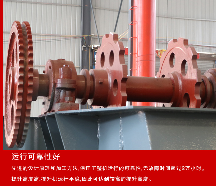 3.運(yùn)行可靠性好;先進(jìn)的設(shè)計原理和加工方法,保證了整機(jī)運(yùn)行的可靠性,無故障時間超過2萬小時。提升高度高.提升機(jī)運(yùn)行平穩(wěn),因此可達(dá)到較高的提升高度。